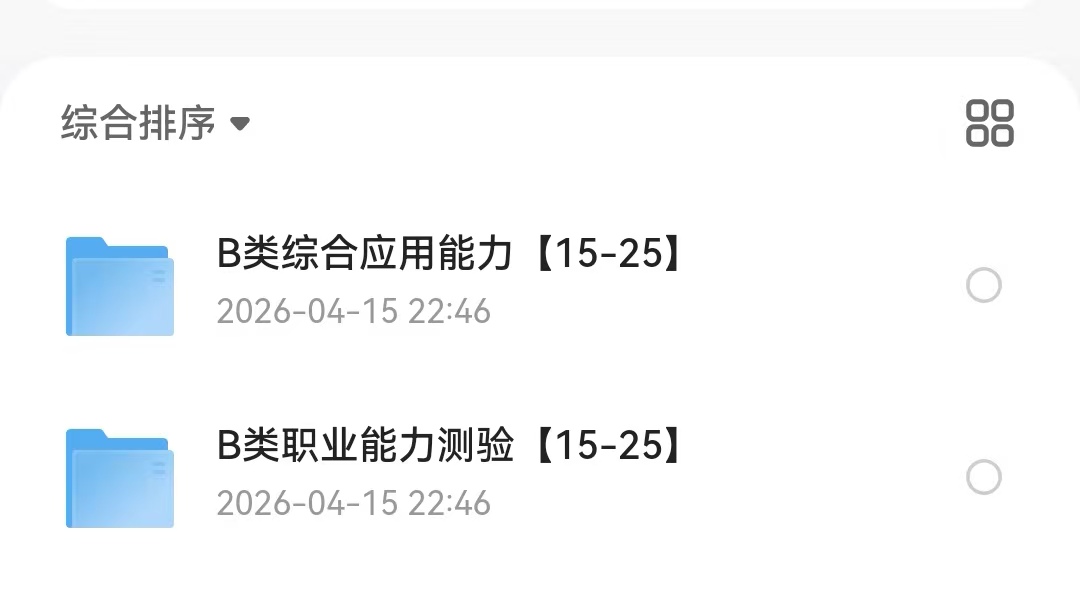 B类职业能力测验15-25年