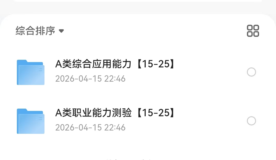 A类职业能力测验15-25年