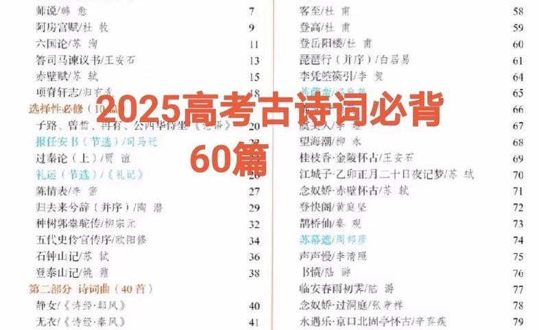 高考语文高中必背古诗词60篇 高中古诗词文言文汇编 省去反复翻找一堆课本的繁琐。Pdf电子版,可直接打印装订成册。