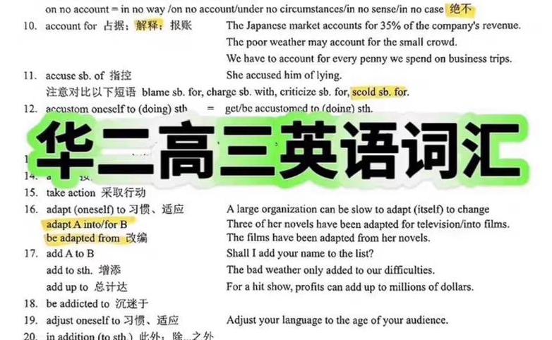 华二高三英语词汇合集+共十份电子版 把重要的词组都列出来了,后面还有混淆词辨析,一词多义,熟词生义板块。
