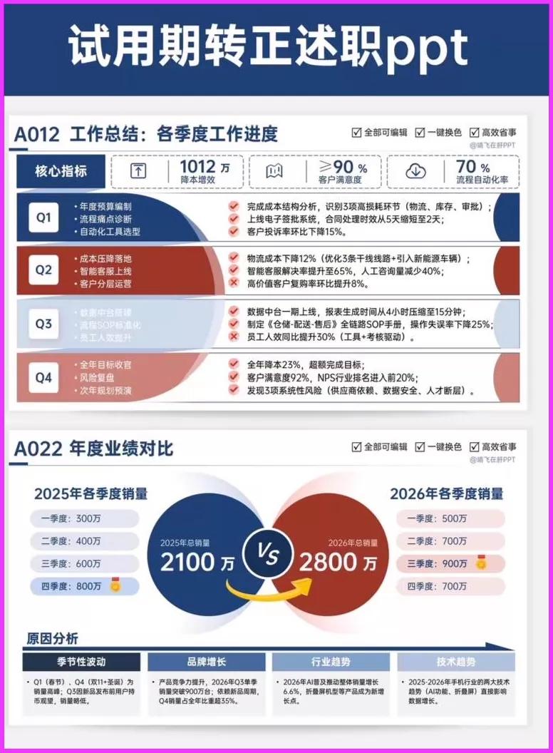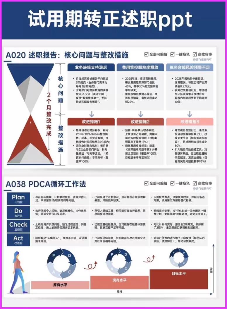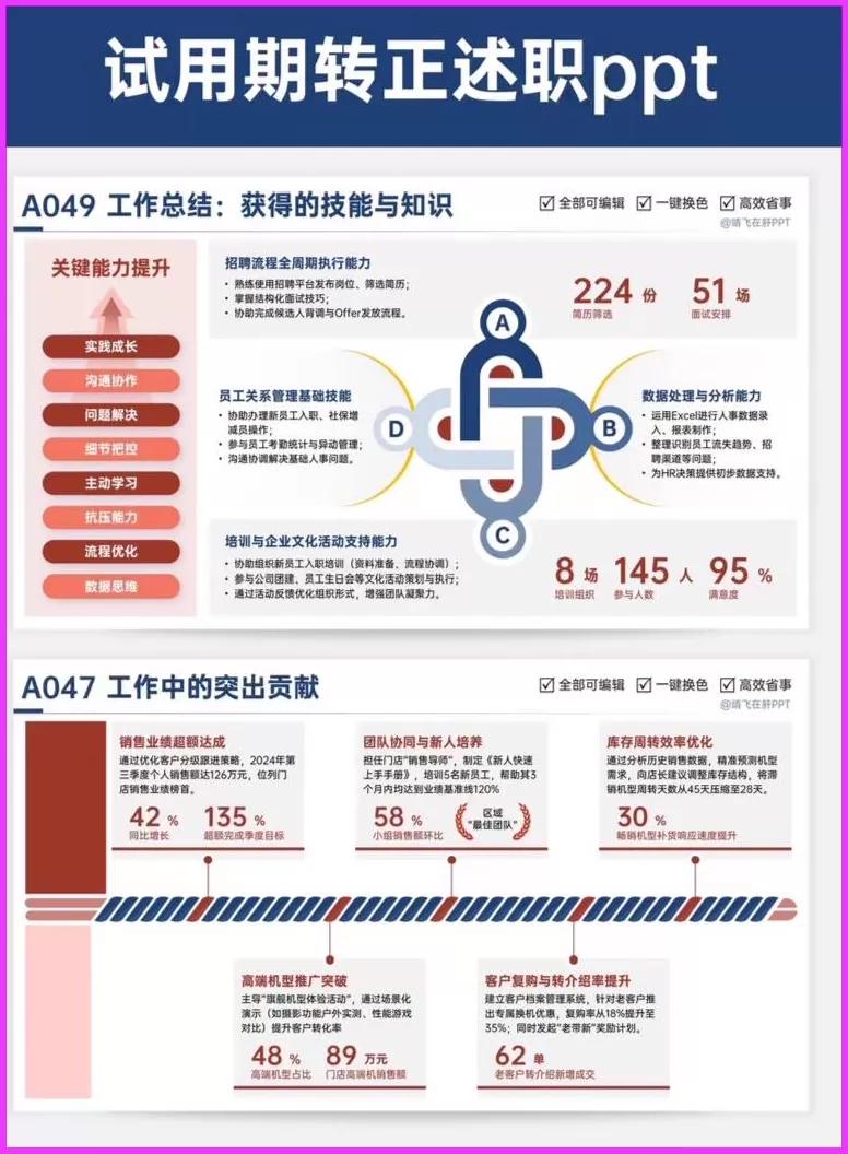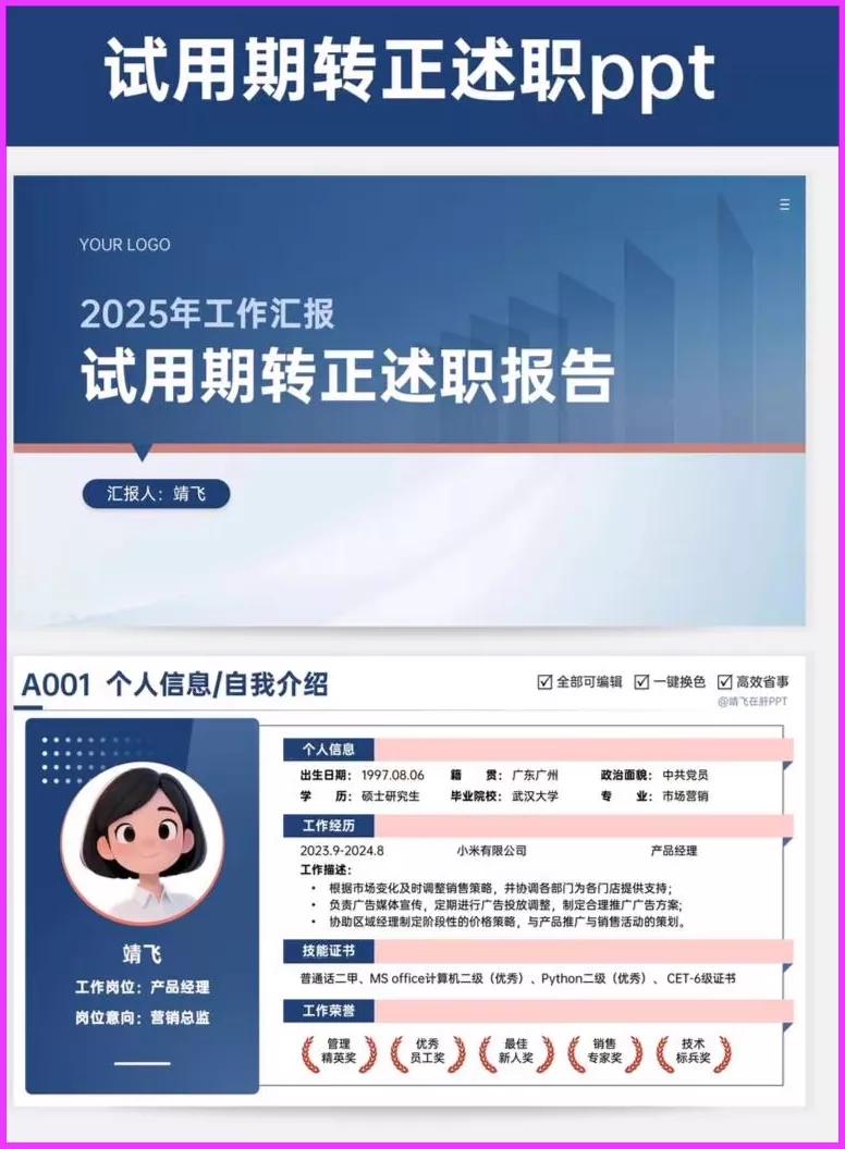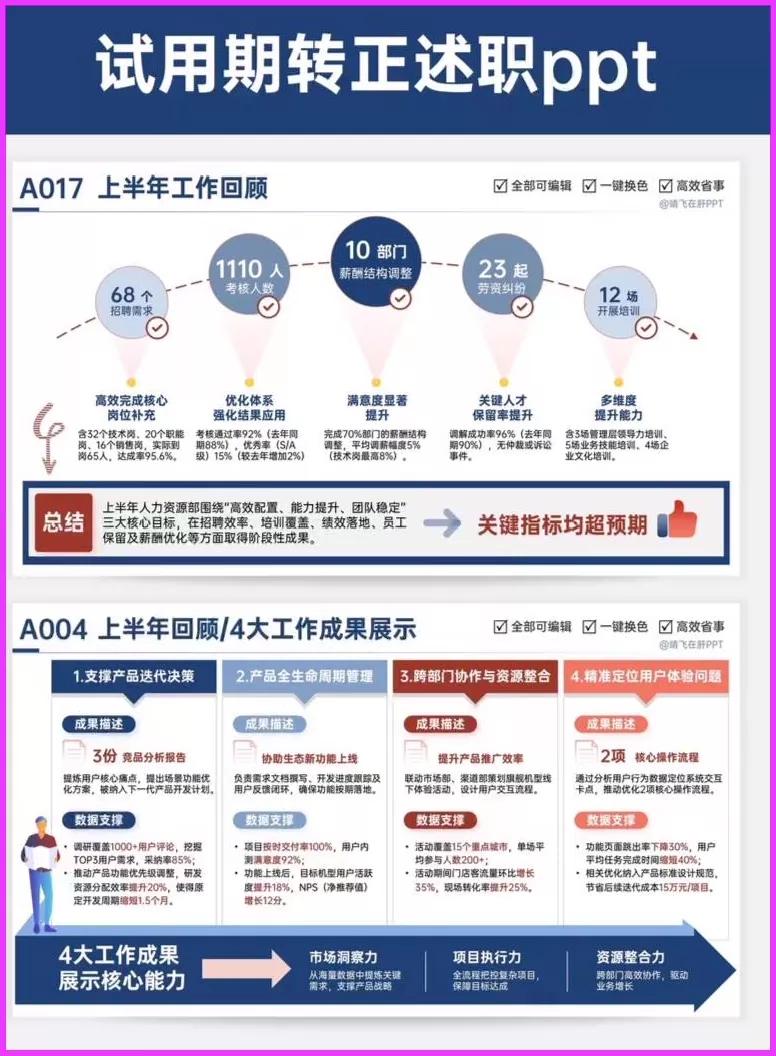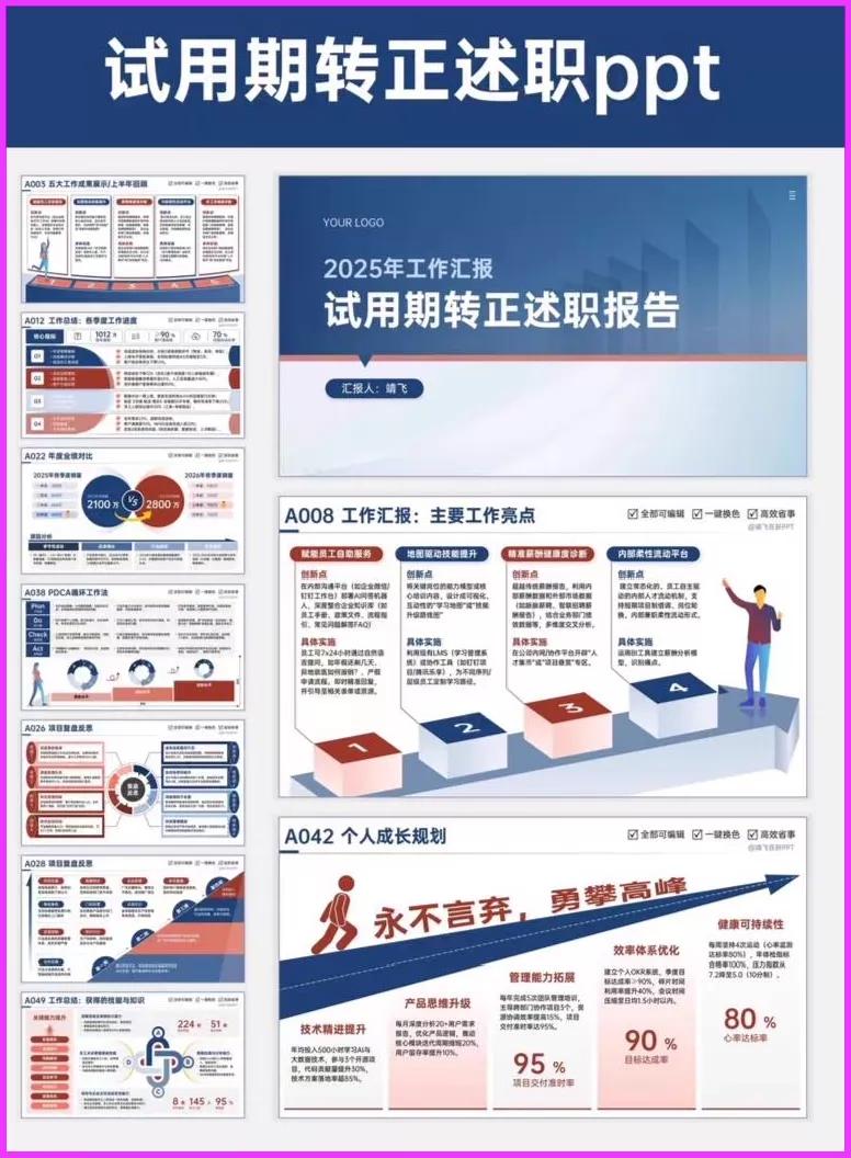转正述职PPT 工作汇报PPT 高级实用年中(终)总结述职报告工作汇报PPT模板|逻辑图|图文排版