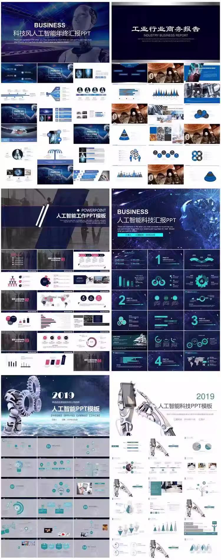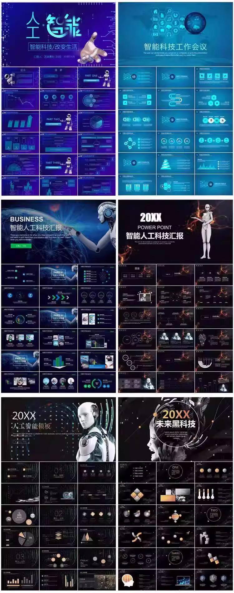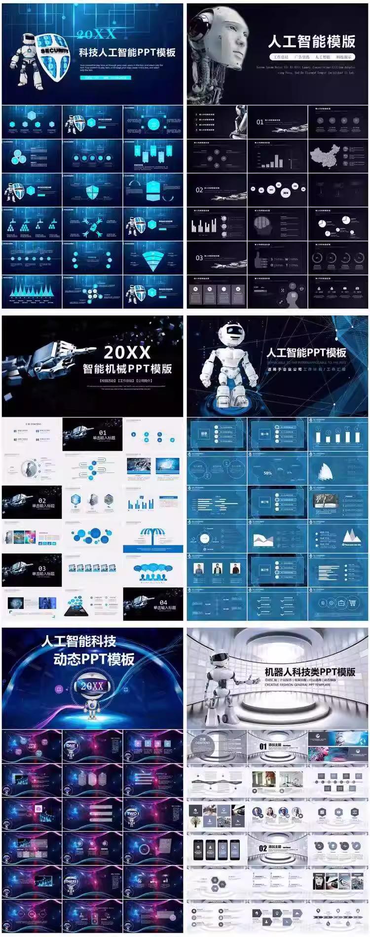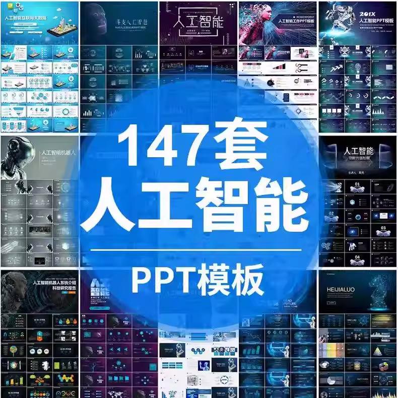 147套人工智能PPT模板|蓝色科技风|机器人主题|动态效果