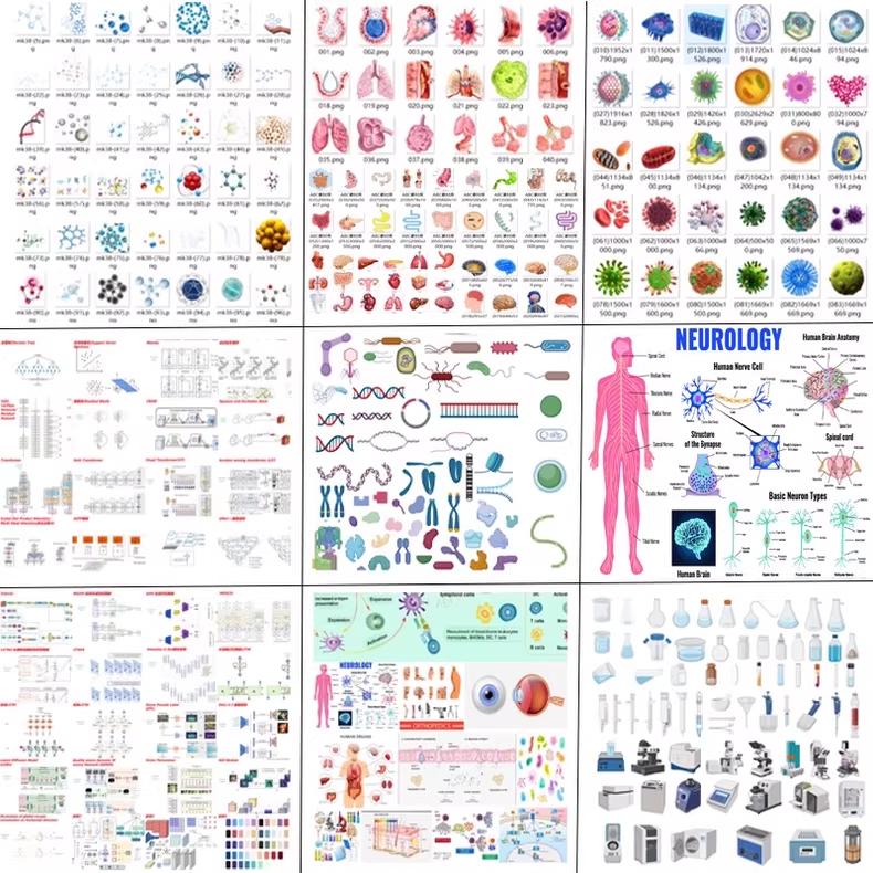 AI科研设计素材,生物医学通用ppt科研绘图素材材料实验仪器设备化学生物流程图片SCI器官细胞AI