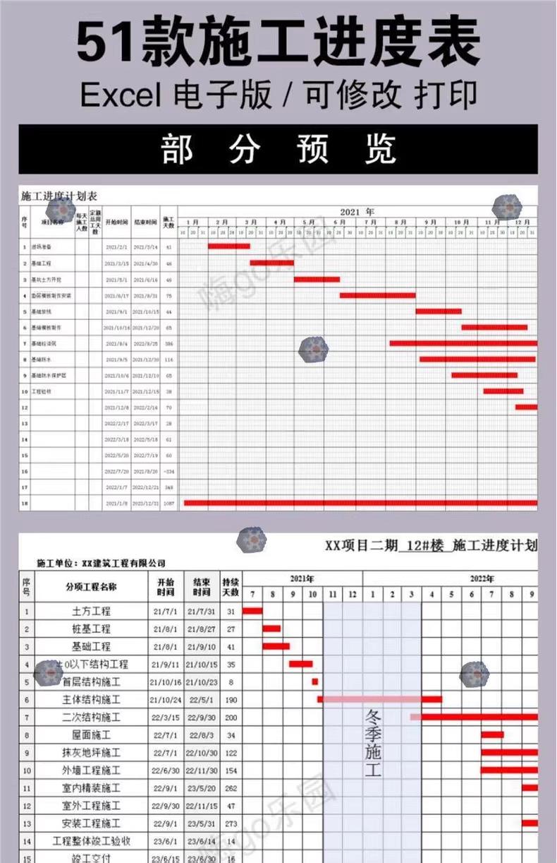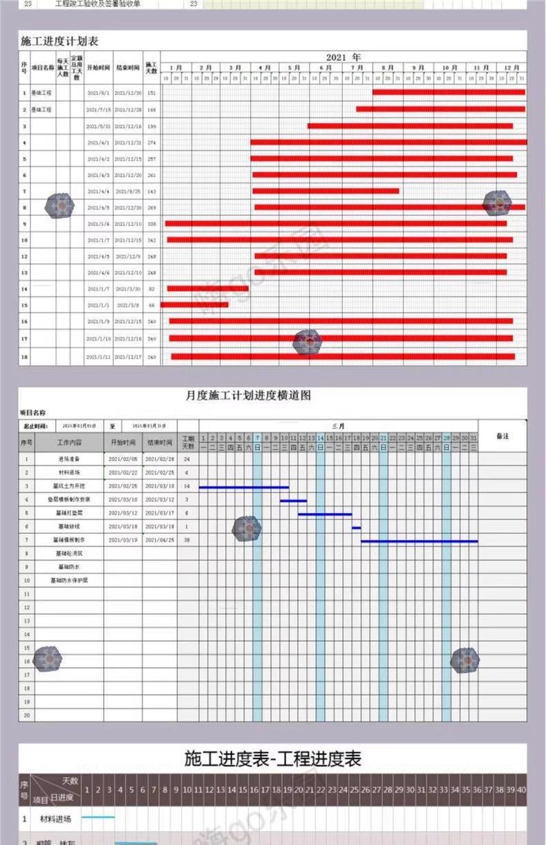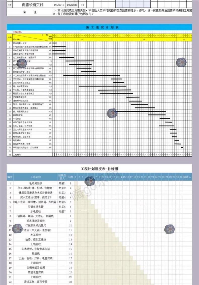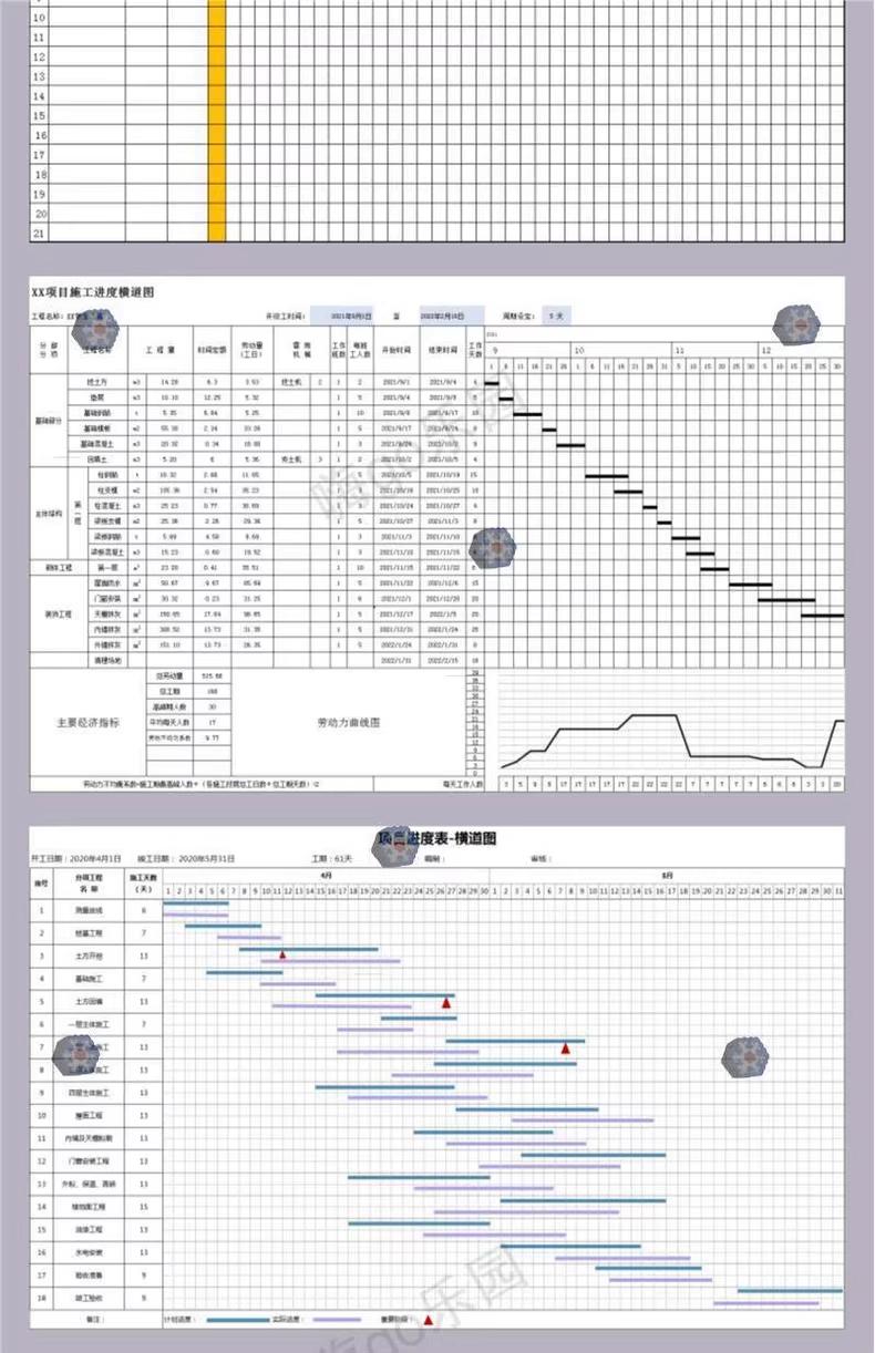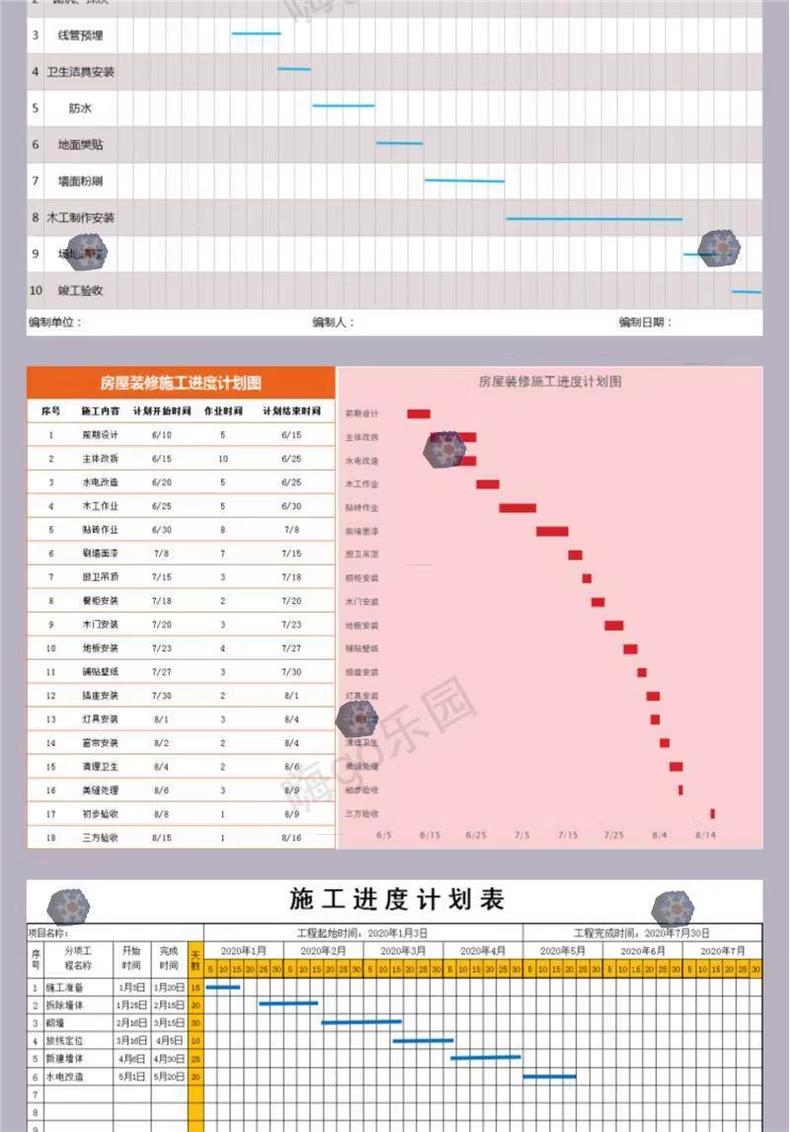 excel横道图施工进度计画条形表建筑室内装修工程专案自动网路图