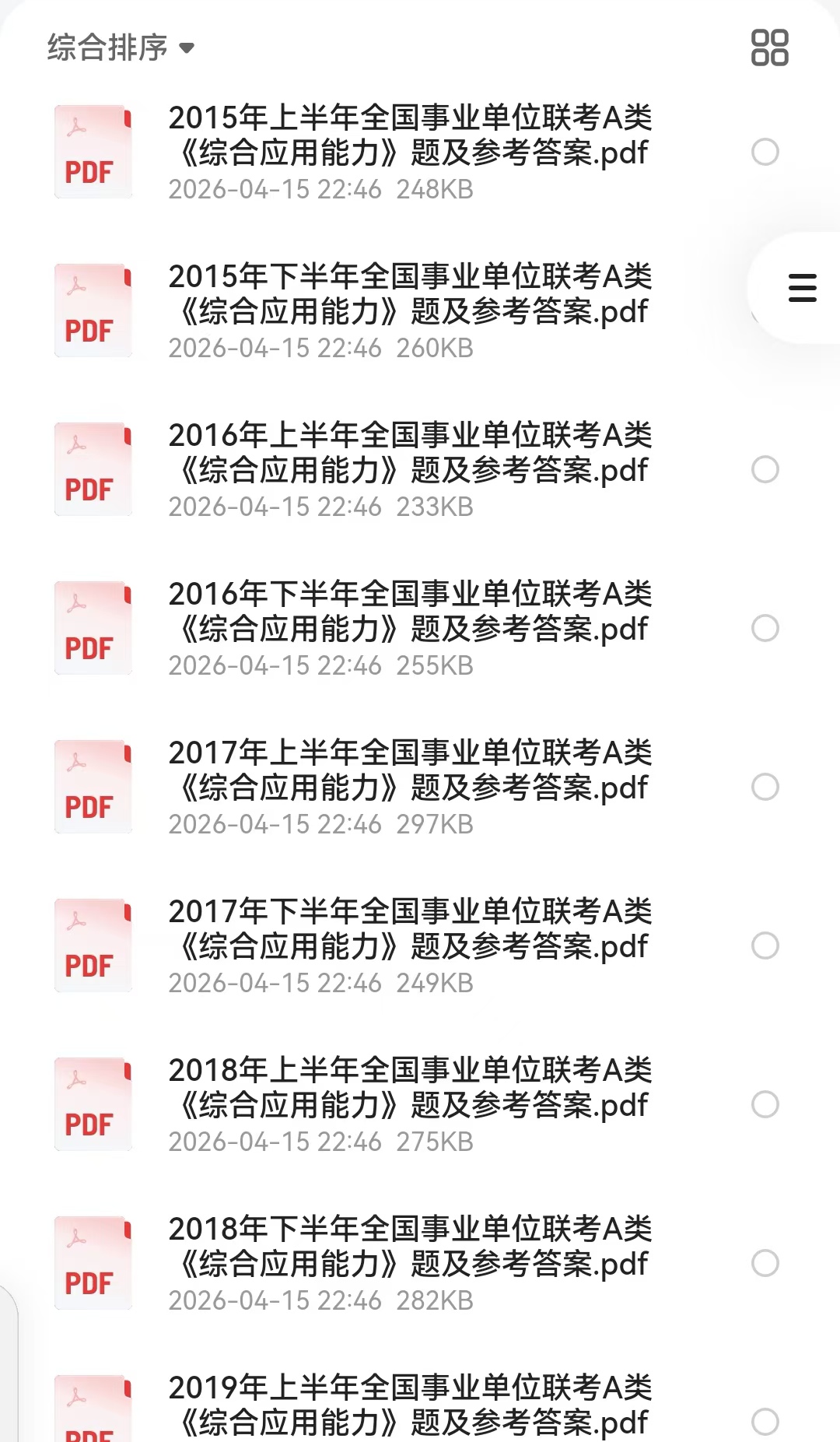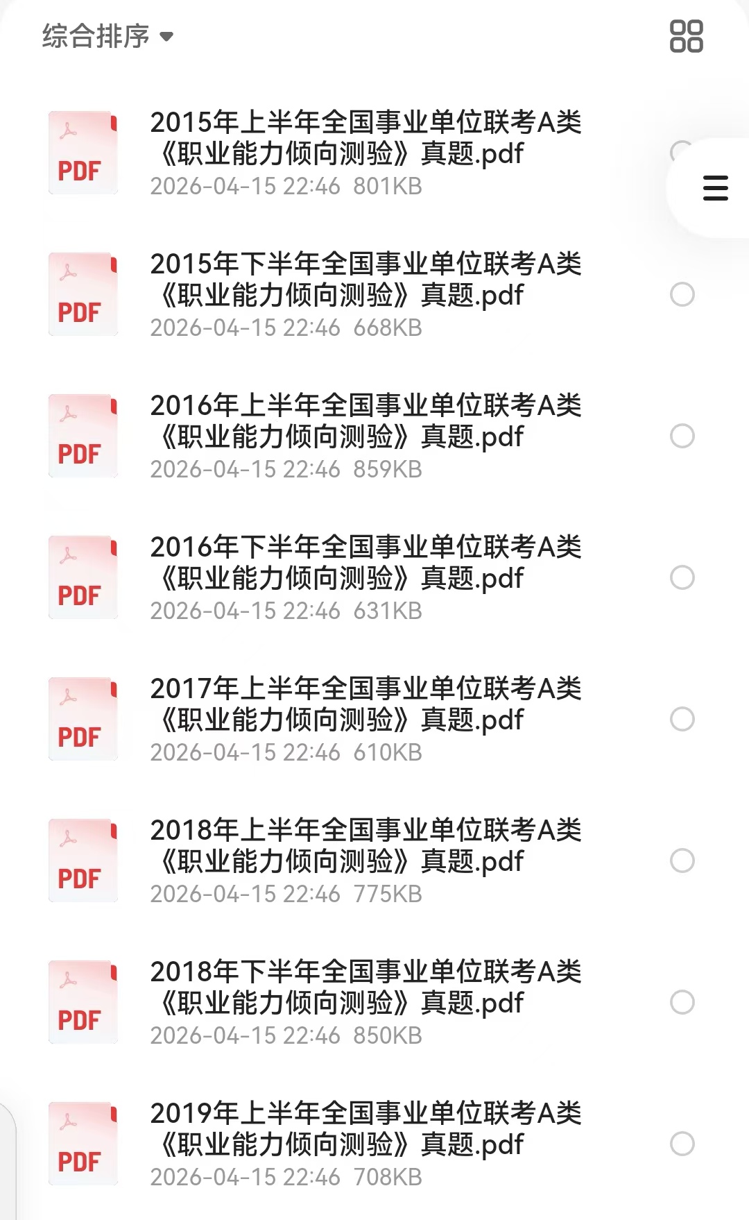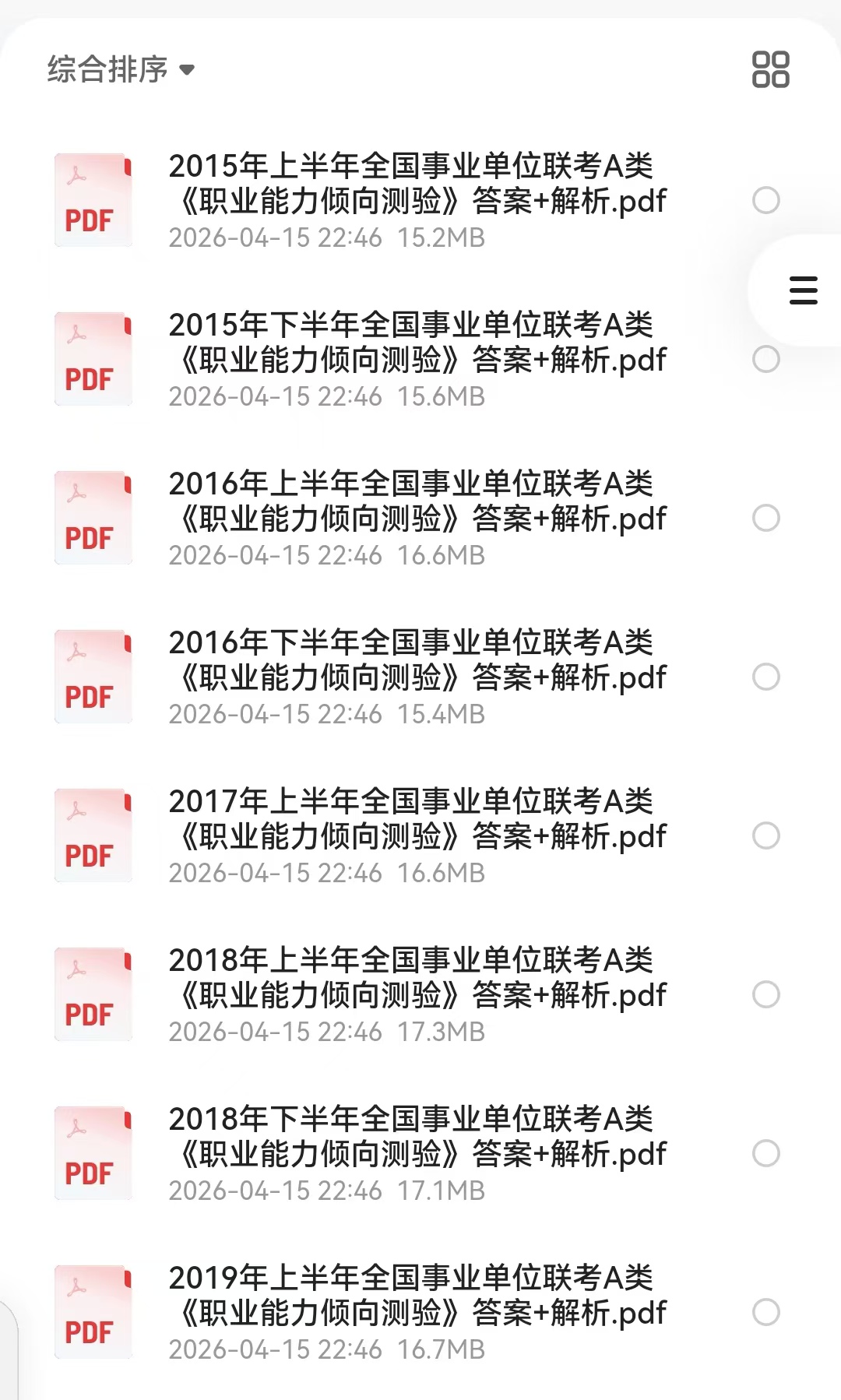 全国事业单位联考A类历年真题答案15-25年综应职业测