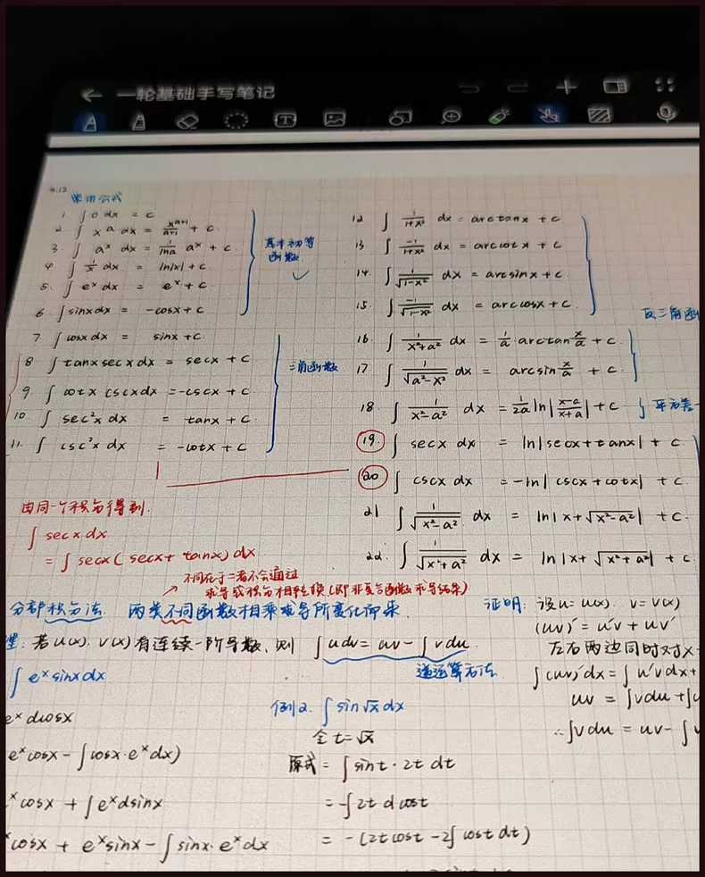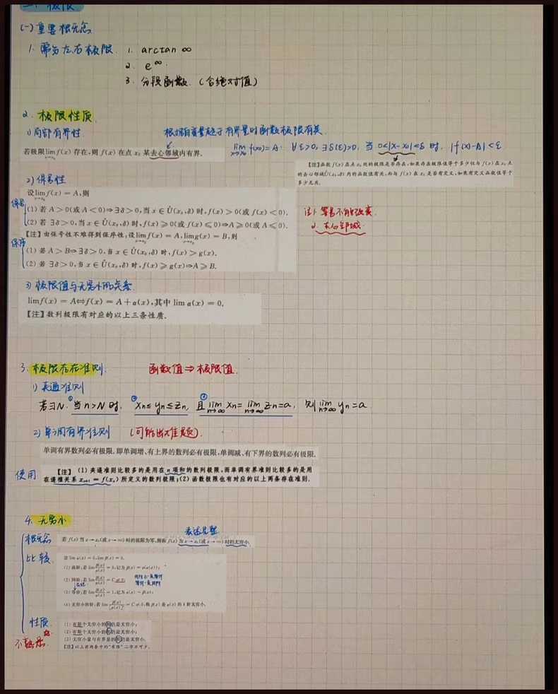 1.数一高数+线代+概率论知识点笔记,按照章节日编写,红蓝笔标注,十分清晰!