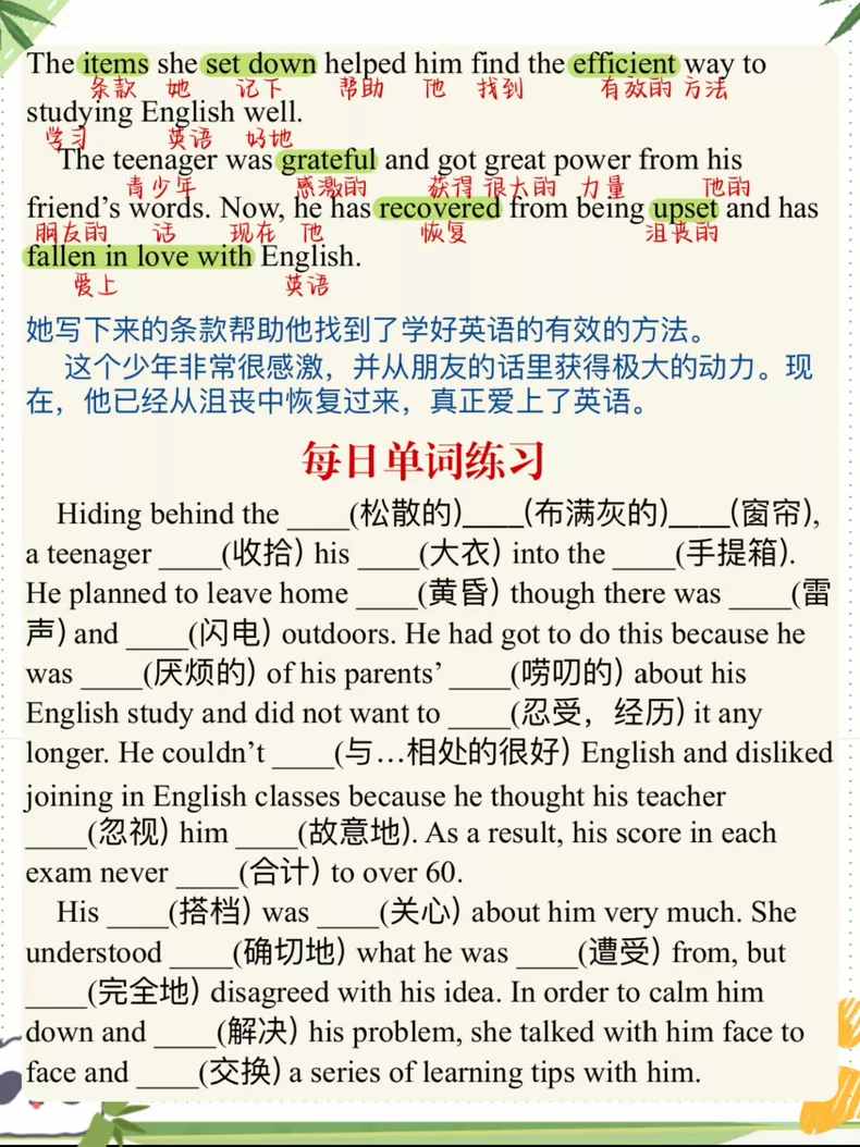 本套笔记主要根据听课和做题整理而成,包括完形填空、阅读理解、大小作文、新题型、翻译5大题型的笔记,其中阅