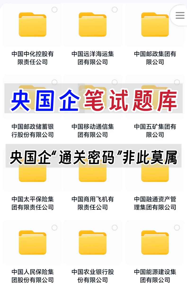 资料包含了几十家头部央国企的笔试题库