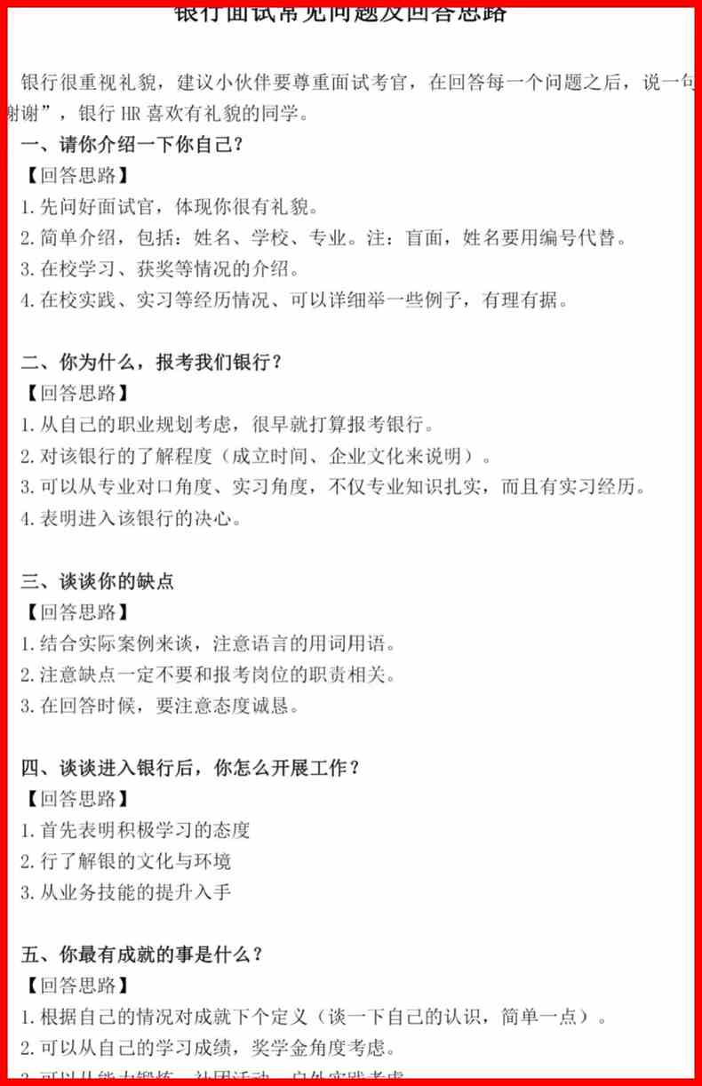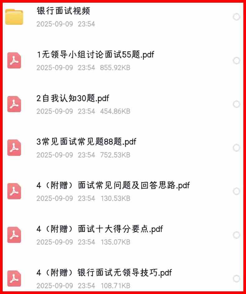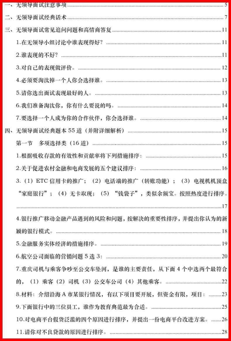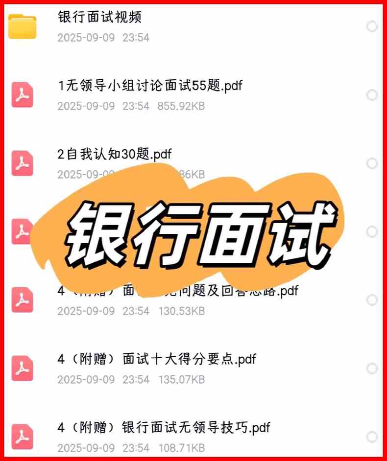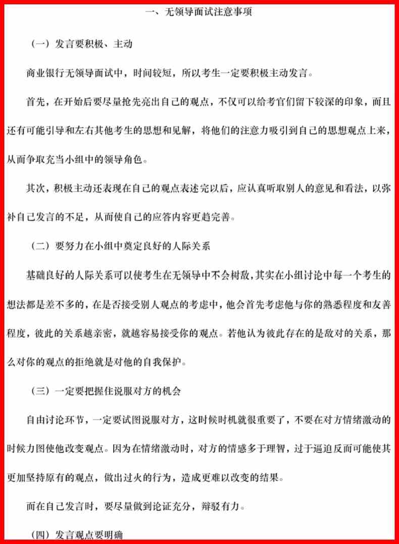 银行面试合集!无领导小组讨论+自我认知+常见面试题+十大得分要点+无领导面试技巧+视频资料全都有!