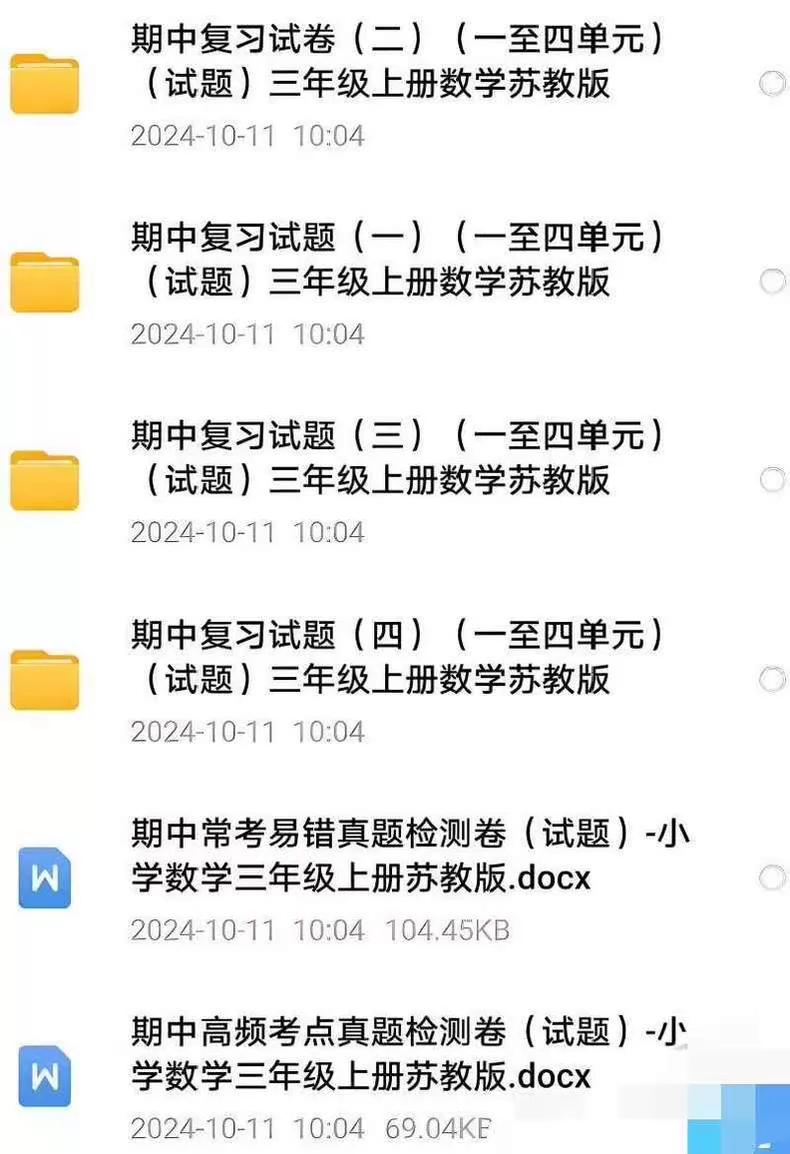 苏教版小学数学一二三四五六年级上下册期中末单元试卷试题电子版