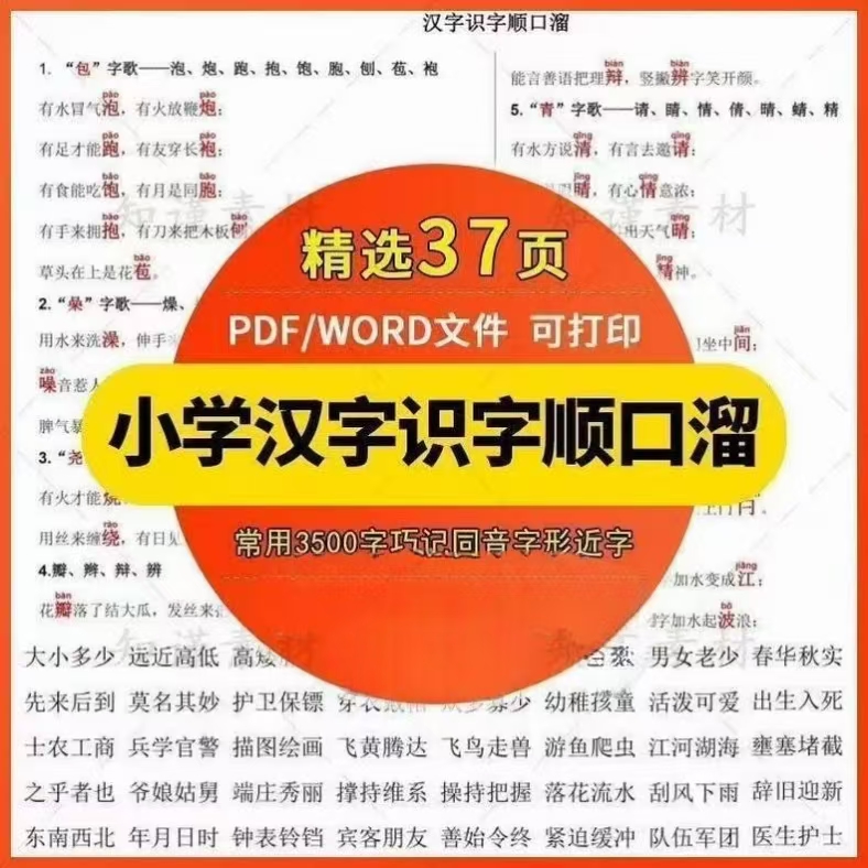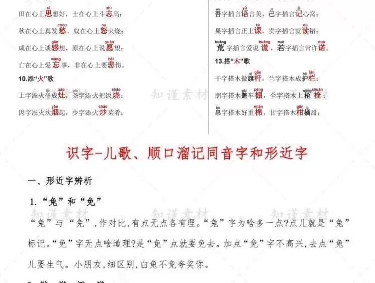 小学语文3500字汉字识字顺口溜 巧记同音字形近字认字小学教程
