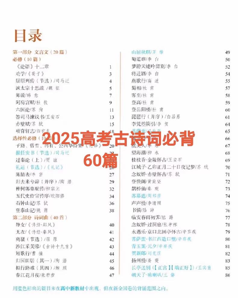高考语文高中必背古诗词60篇 高中古诗词文言文汇编