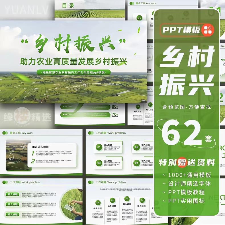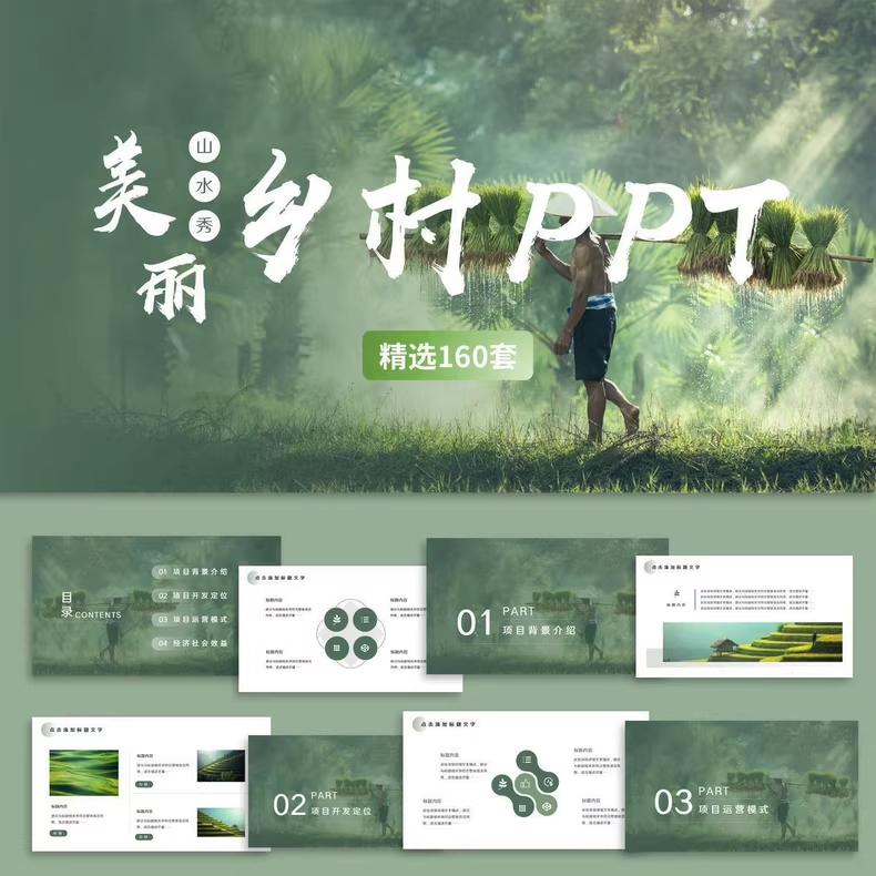 300+套乡村振兴高端ppt模板智慧农业 新农村绿色生态旅游计划方案建设计划方案美丽