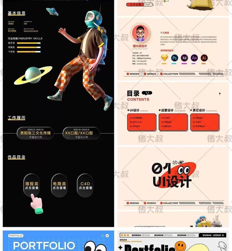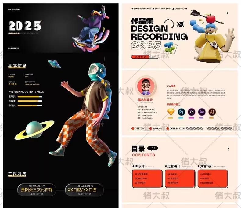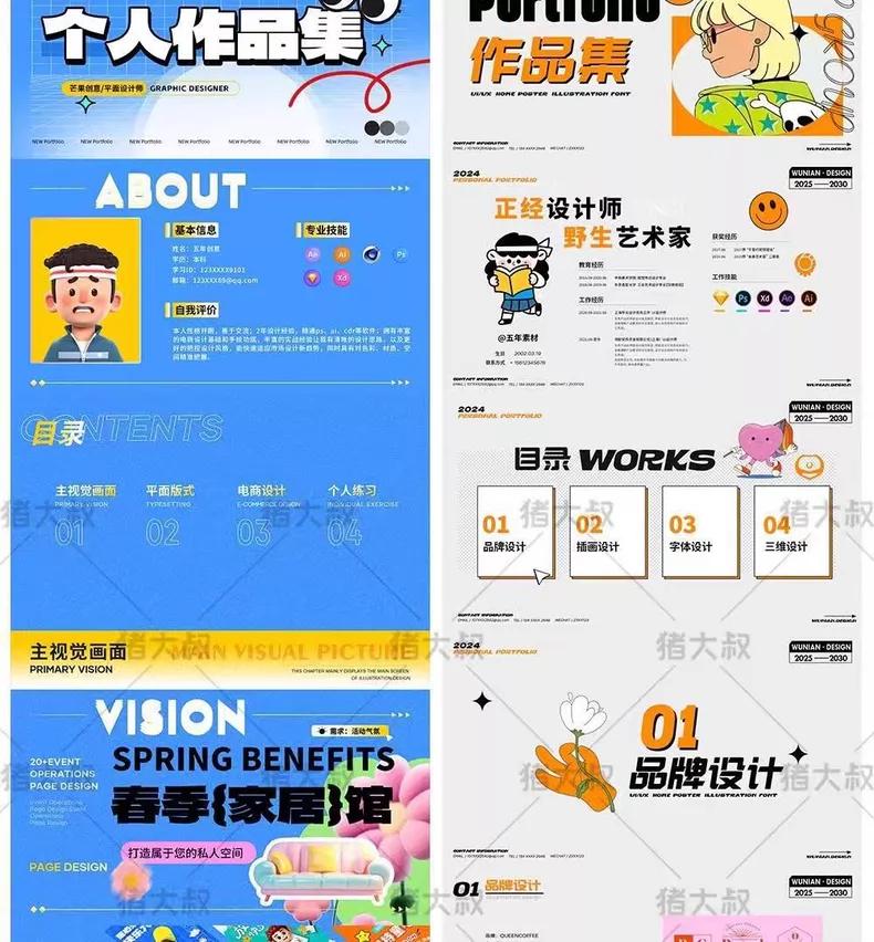 平面设计作品集模板毕业个人简历UI界面电商AI设计PSD素材PPT排版