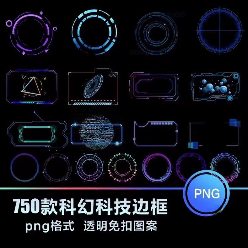 750款png免抠图设计边框素材科幻科技边框直接封神!
