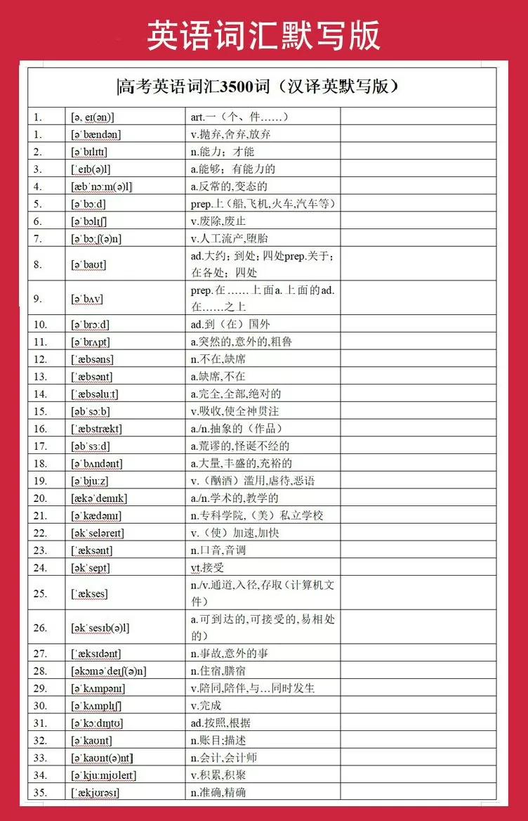 小学初中高中英语三四五六年级单词默写词汇总表电子版word可打印
