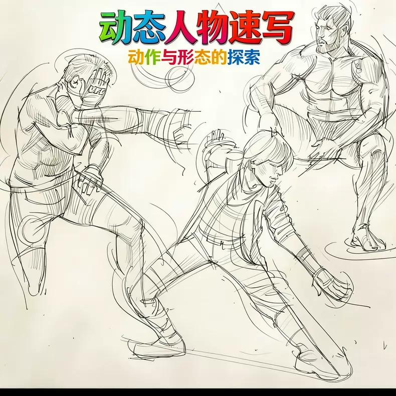 - 涵盖人体结构、表情、动作等多维度手绘草稿