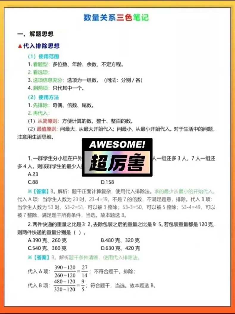 笔记涵盖内容:《行测文》53页PDF (资料分析、数量关系)