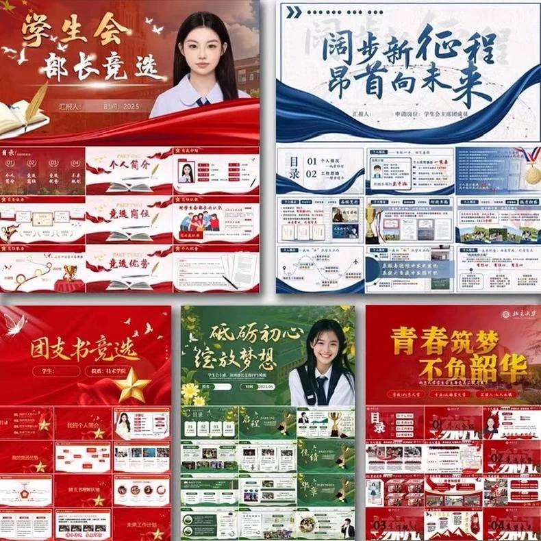 - 学生会主席、部长、团支书、奖学金、班干竞选通用