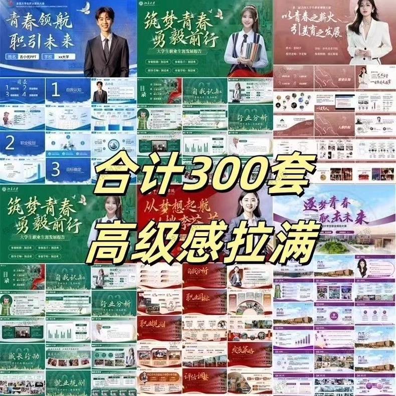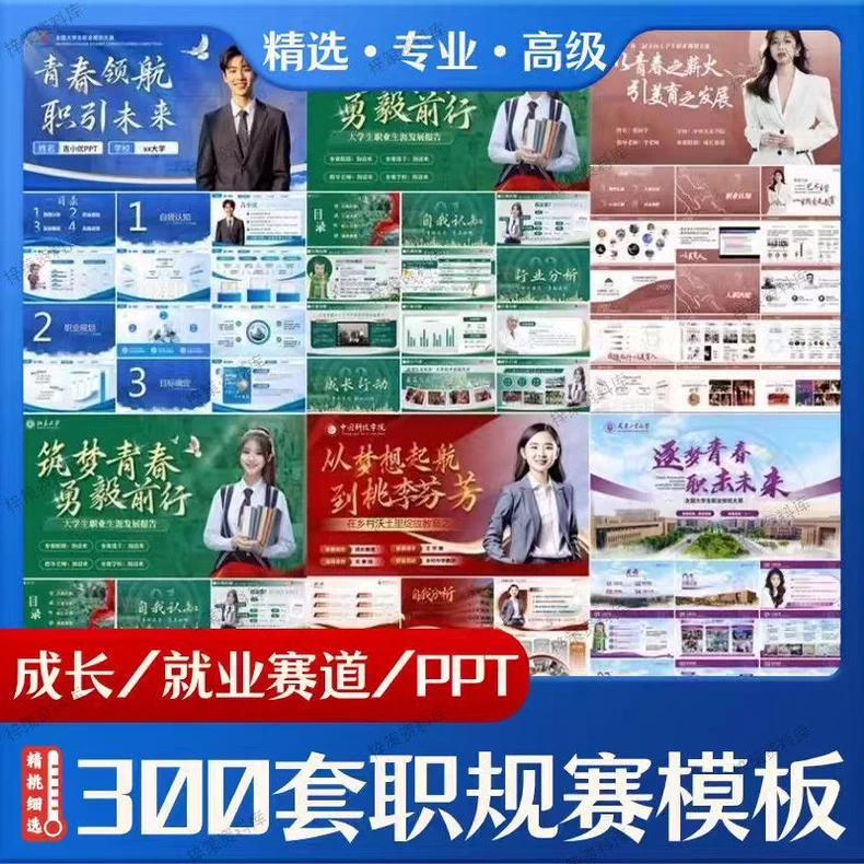 300套大学生成长就业赛道高级感PPT模板,红色职业生涯规划大赛职规赛PPT模板!