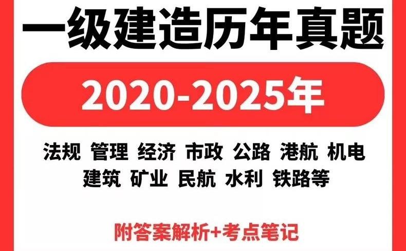 一级建造师各科目历年真题+答案+笔记,2026年一建备考,含法规,管理,经济,市政,公路,港航,机电,建筑,矿业,民航,水利,铁路等